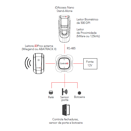 - 1 porta nativa de entrada Wiegand
