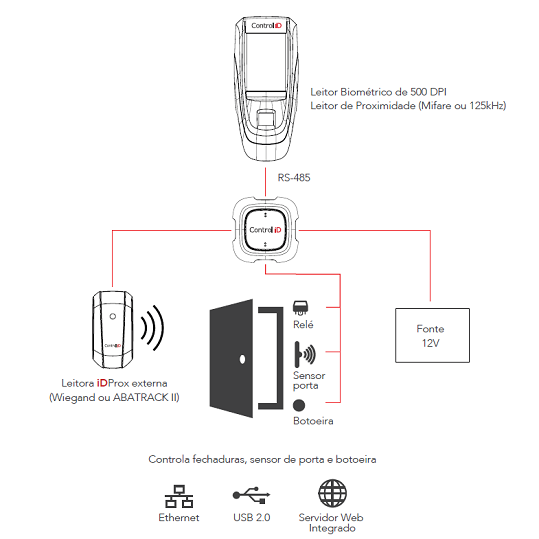 - Identificação biométrica 1:N de até 100.000 digitais (conforme modelo)